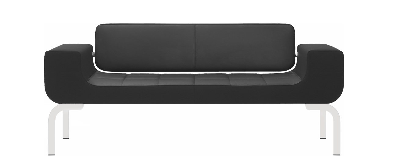 Диван стильного дизайна в холл, приёмную, зону ожидания. Высота сиденья - 40 см. Глубина сиденья-49 см.Металлические опоры. Возможные обивки ткань, экокожа, кожа. Цвета по выбору. Цены указаны на бюджетные материалы 1-й категории. Цены и цвета на остальные материалы – по запросу.