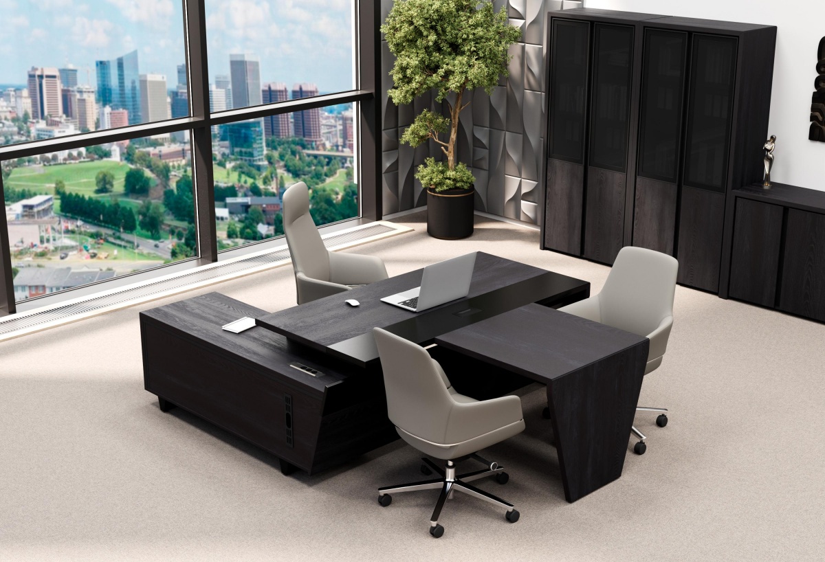 В современном корпоративном мире при выборе мебели для кабинета руководителя наблюдается тенденция к отказу от тяжеловесных конструкций и насыщенных тёмных или, наоборот, слишком ярких цветов в пользу лаконичных форм и природных оттенков. Такое сочетание – характерная черта набирающего популярность экостиля.
