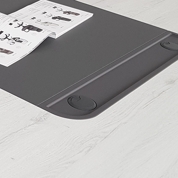 Промежуточная секция TS-140.1 Time предназначена для создания конференц-столов на базе круглого составного стола TS-140 путем вставки модулей. Каждая секция удлиняет на 1400 мм. Две половины круглого стола TS-140 размыкаются и между ними устанавливается промежуточная секция TS-140.1 Time. Количество модулей может быть любым для создания конференц-стола требуемой длины. На линии стыка составных элементов вмонтирована круглая вставка диаметром 400 мм с углублением для канцелярских принадлежностей. Вставка состоит из 2-х половин, изготовлена из МДФ и облицованная вакуумным методом ПВХ-пленкой черного цвета в тиснении «шагрень». Толщина столешницы секции 40 мм