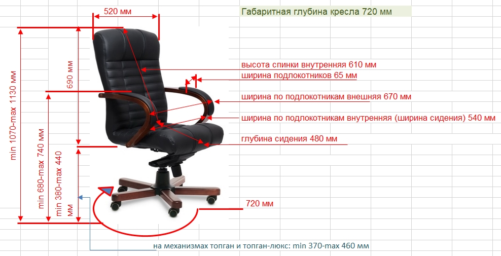 Элитное кресло со средней спинкой для руководителя. Лицевая часть обивки спинки и сиденья выполнены из натуральной кожи, задняя часть – из экокожи. Подлокотники – шпонированная гнутоклеенная фанера в цвете «тёмный орех», накладки из кожи. Спинка с декоративными утяжками. Механизм качания – мультиблок с фиксацией кресла в 4 положениях, регулировка жесткости качания по весу сидящего; газ-лифт (3-я категории стабильности) для регулировки по высоте; прорезиненные колеса. Пятилучье металлическое с накладками из массива бука. Максимальная нагрузка - 150 кг.