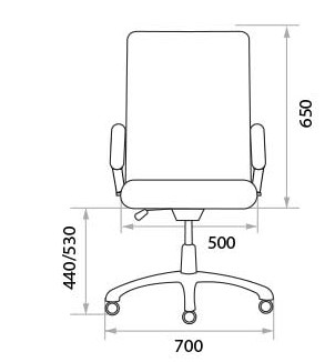 Кресло руководителя . Возможные материалы обивки: 1)мебельная ткань черного или тёмно-серого цвета;2) искусственная кожа чёрного цвета. Широкое сиденье. Регулировка по высоте. Механизм качания. Пластиковые пятилучье и подлокотники. Ширина сидения- 50 см. Высота спинки- 65 см. Высота сидения- 44-53 см.