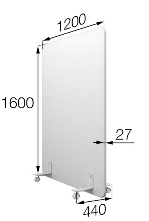 Мобильная перегородка на 4 колёсных опорах. Перегородка изготовлена из ЛДСП, обтягивается упругим материалом изолон толщиной 5 мм, сверху съёмный декоративный чехол из искусственной светло-зелёной кожи OREGON 19. Колёса из прорезиненного пластика крепятся к металлическим кронштейнам чёрного цвета. Толщина перегородки без учёта габаритов опор-35 мм . На складе 2 шт