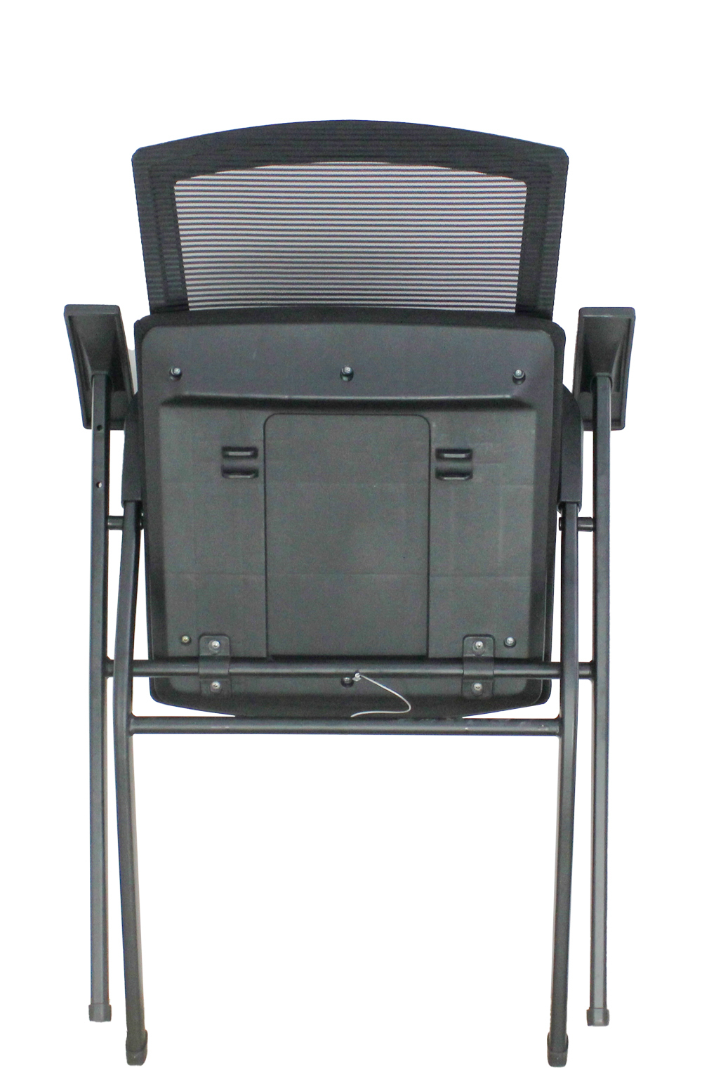 Компактный складной стул. Для хранения быстро складывается и не занимает много места. Каркас металлический окрашенный чёрным порошковым покрытием. Обивки: спинка-акриловая сетка, сиденье-черная ткань. Допустимая нагрузка-100 кг. Использование со складными конференц-столами позволяет оптимально использовать помещение для различных назначений.